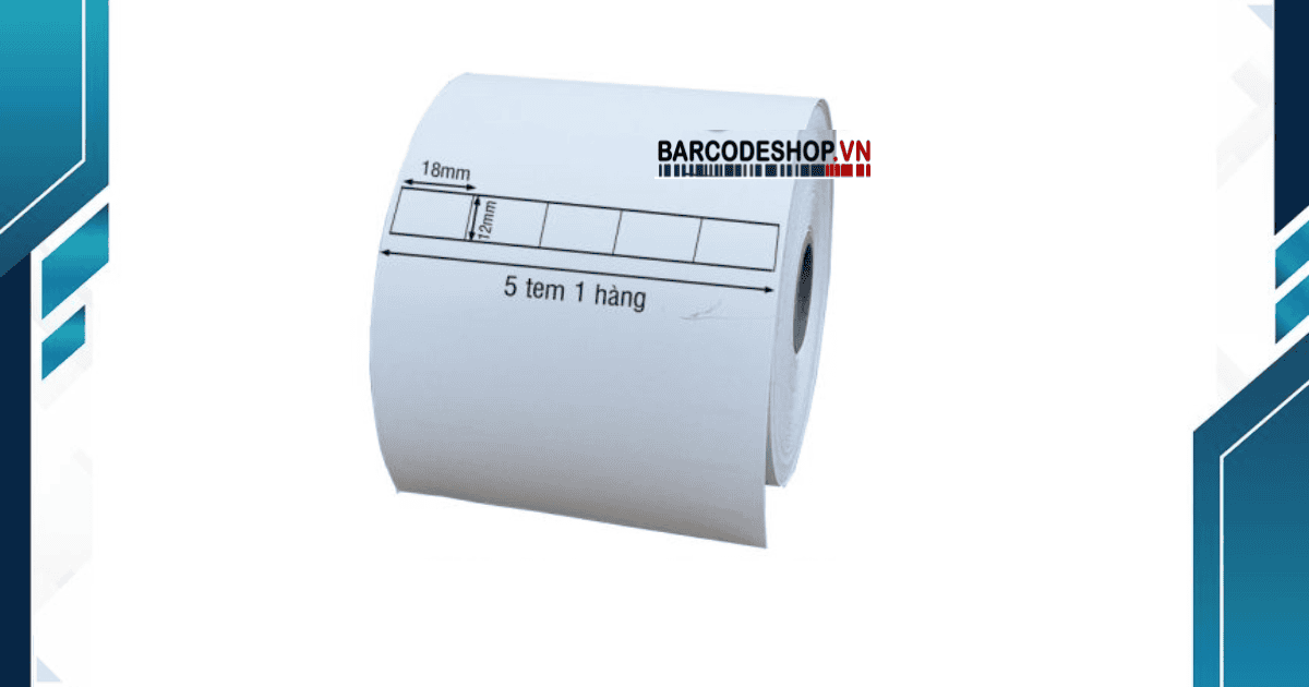 Kích thước tem 18mm x 12mm, được bế theo quy cách 5 tem trên 1 hàng, giúp tối ưu tốc độ in, tiết kiệm thời gian và số lượng tem in mỗi lượt. Kích thước nhỏ gọn phù hợp với thiết bị điện tử, linh kiện, mỹ phẩm, phụ kiện…
